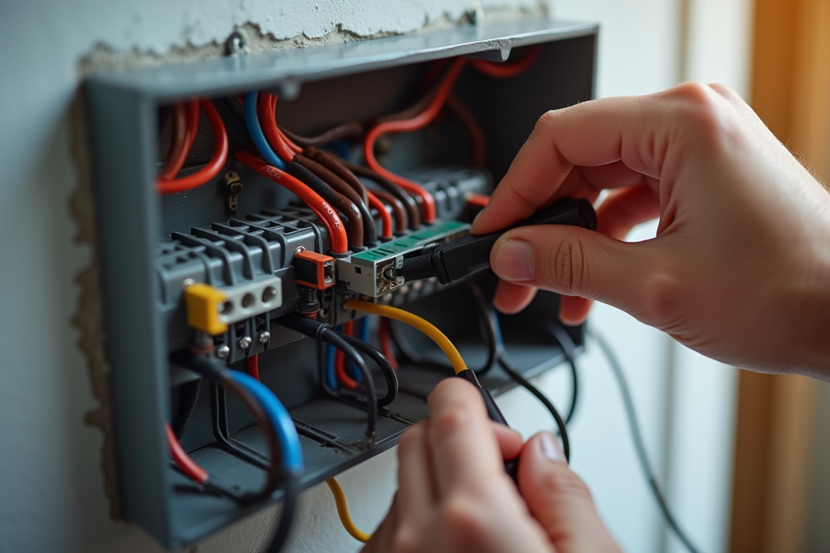 Pour garantir votre sécurité, coupez l’alimentation électrique au niveau du disjoncteur général. Utilisez un testeur de tension pour vérifier l’absence de courant sur les conducteurs avant de manipuler les câbles.